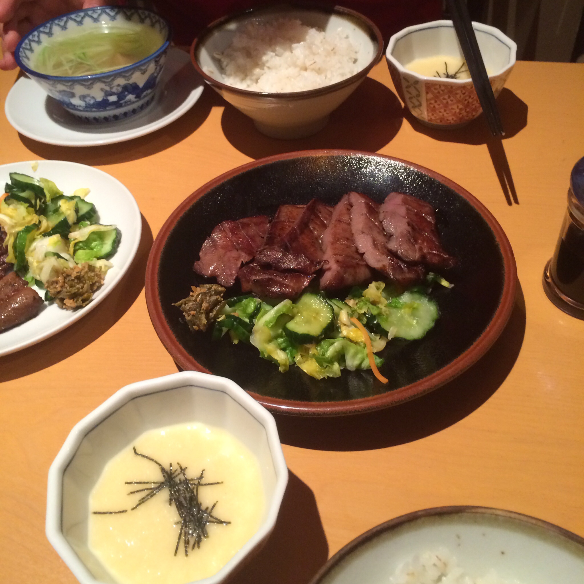 テールスープに麦めしにとろろ。