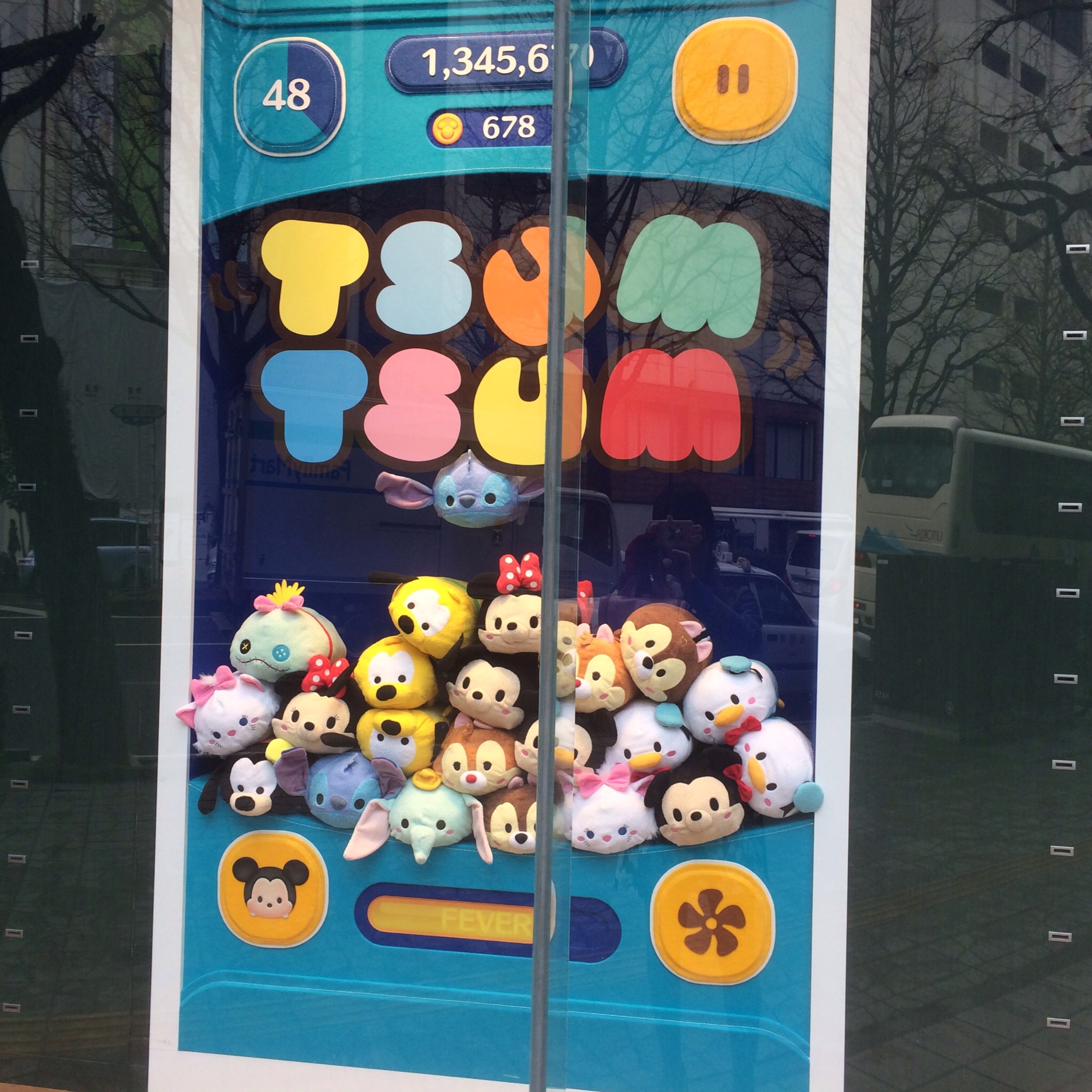 ディズニーショップのウインドにLINEゲームのTSUM TSUMが