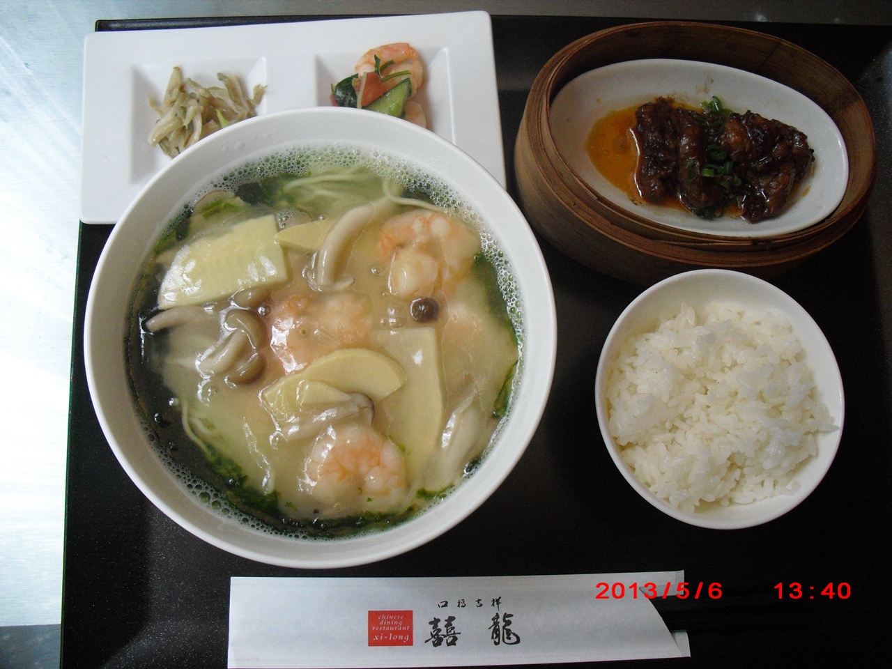 海老と青のり竹の子の麺 3種小鉢ご飯付き