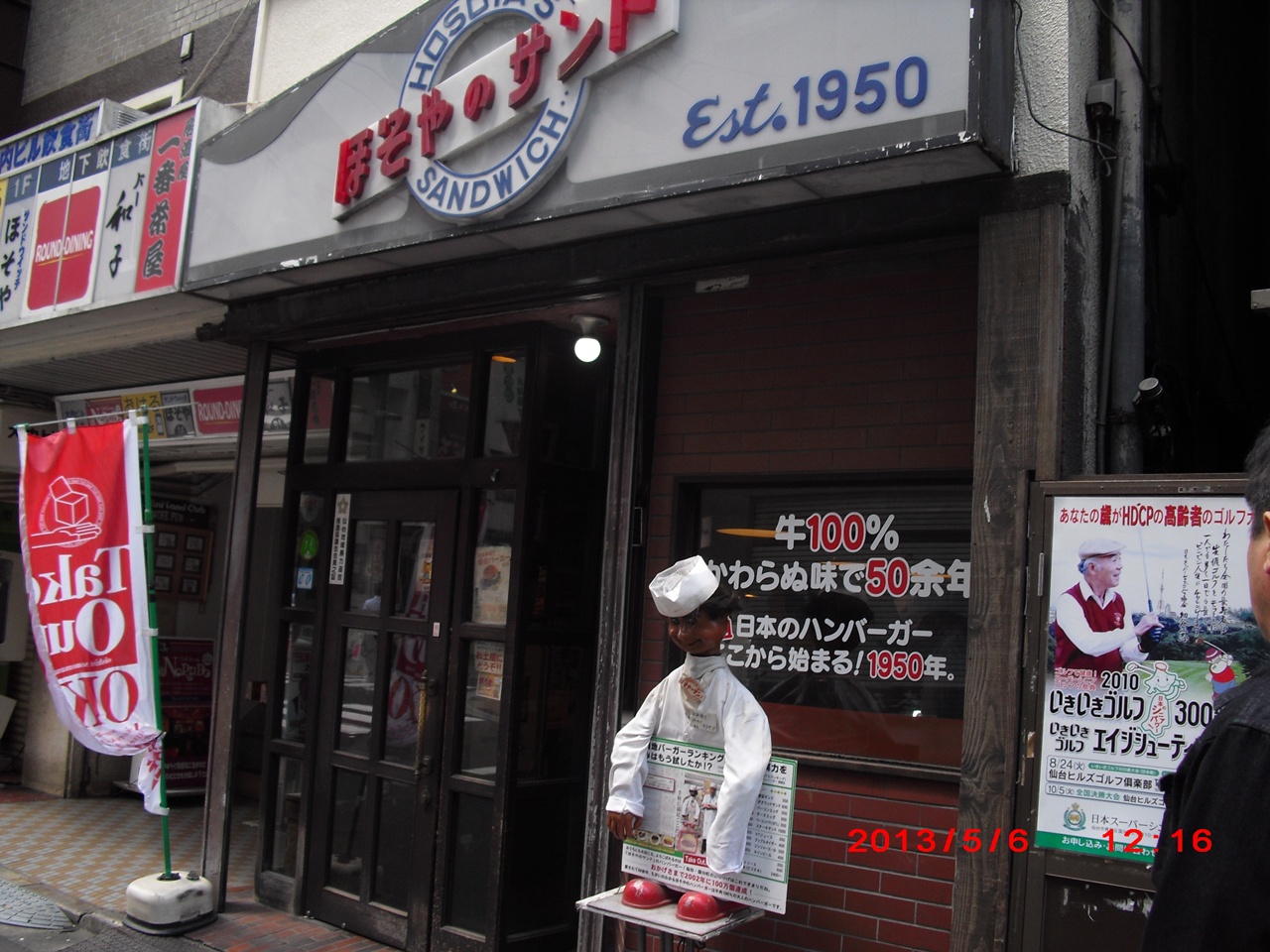 1950年開店 虎横町の『ほそやのサンド』¥300 一度は食べたい絶品!!甘めのパンと牛肉100%のハンバーグ。美味しいです。❤